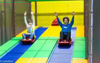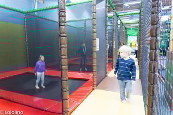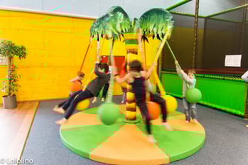 Die Hüpflandschaft bläst sich interaktiv auf und ab. Hier kannst du deine Hüpf- und Balancierkünste unter Beweis stellen.